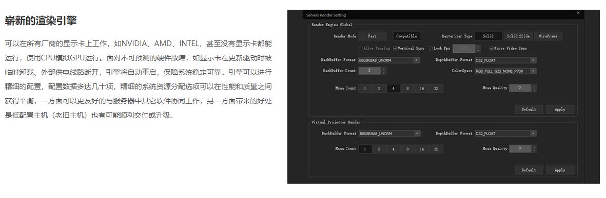 Compared to its predecessor, we have rewritten the entire architecture using the latest technology, and it is a new set of carefully designed software that seamlessly combines many specialized functions to become a tool specifically designed to deal with immersive experience projects. It can accommodate a wide range of screen shapes such as Right Angle Cave (Folding Cave), RC-Cave, U-Cave, Bowl Cave, Dome Cave, 3DMapping, and more. In fact, it is currently almost omnipotent and can cover the vast majority of market demand.